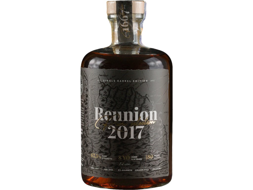 Reunion 2017 je rumem pro opravdové znalce – destilovaný kolonovou metodou, zrál celých 8 let v sudech po bourbonu (4 roky tropicky, 4 roky kontinentálně), které mu dodaly hluboké tóny vanilky, karamelu a dřeva. Plněn byl v únoru 2025 při sudové síle 62,9 %, bez filtrace a bez jakéhokoliv doslazení.