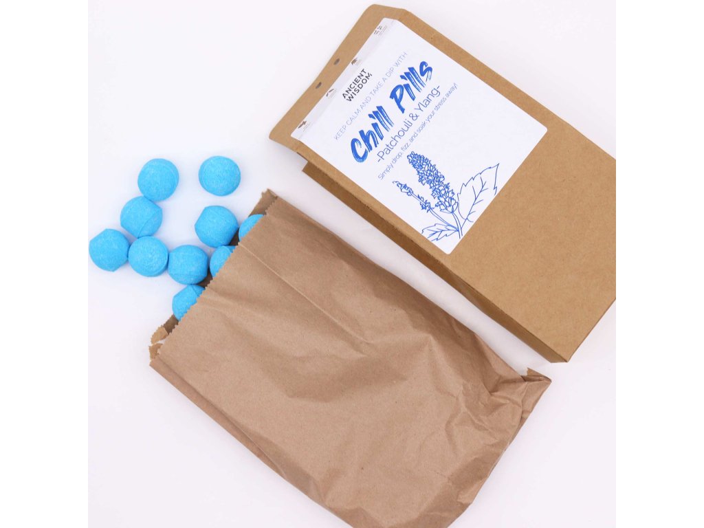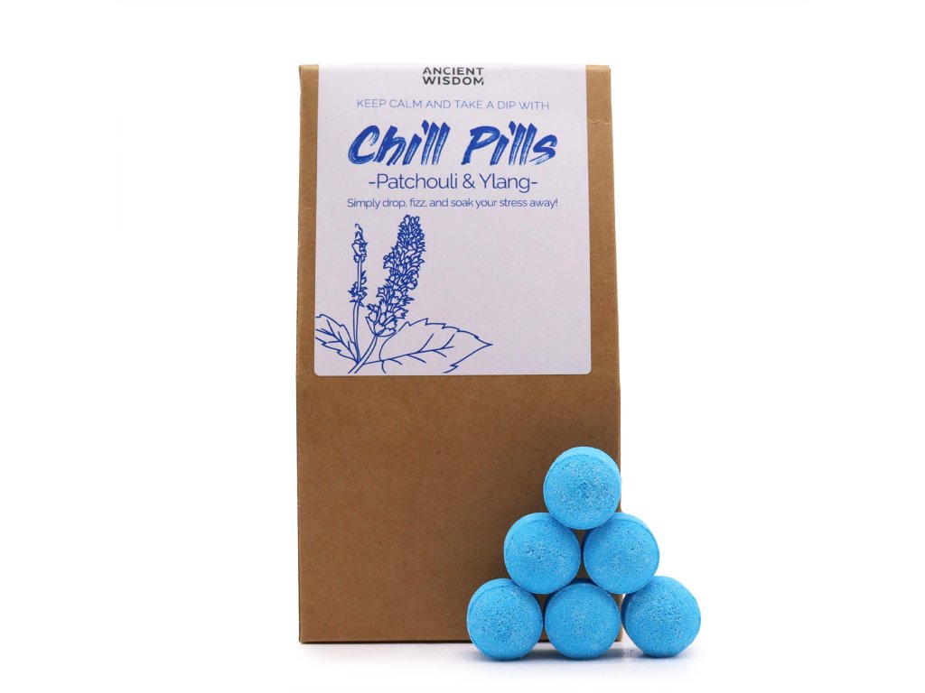 Chill Pills Patchouli & Ylang: šumivé kuličky do koupele s exotickou vůní pro hluboký klid, relaxaci a harmonii těla i duše.