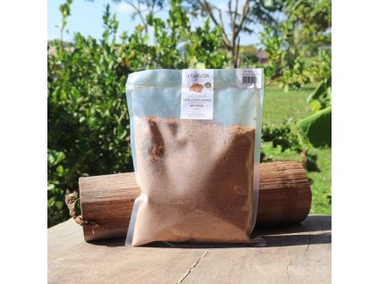Kokosový cukr (50 %), kakao (31,3 %), sušené kokosové mléko, skořice, himálajská sůl, chilli, černý pepř.