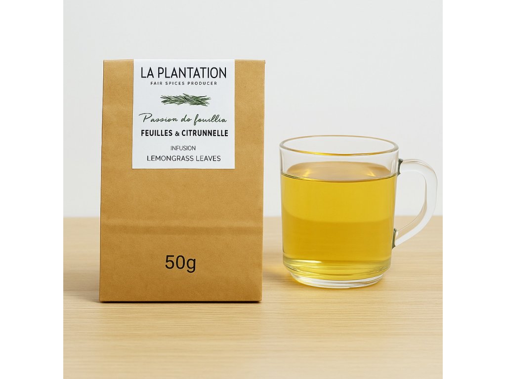 Organický čaj z citronové trávy La Plantation. Detox, relax, posílení imunity. Silná citrusová chuť, Fair Trade, 50 g. Horký i ledový nápoj.