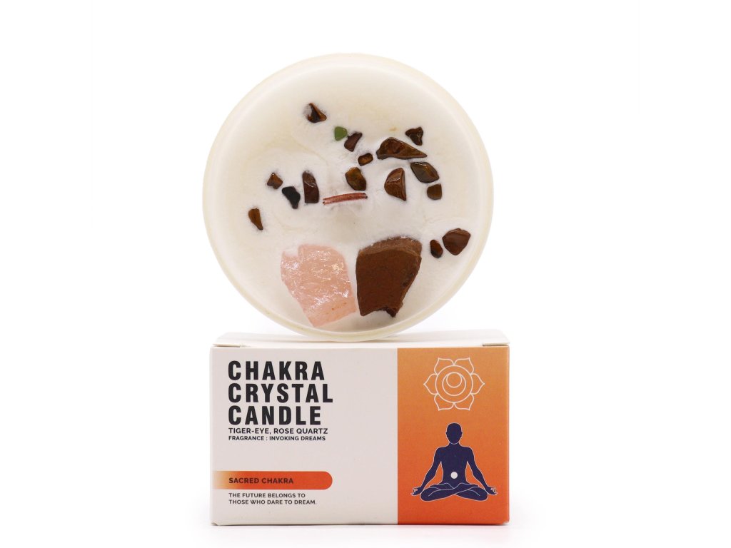 Zažijte sílu léčení s čakrovou křišťálovou svíčkou Sacral Chakra od Ancient Wisdom, která probouzí energii vášně, tvořivosti a emocí.