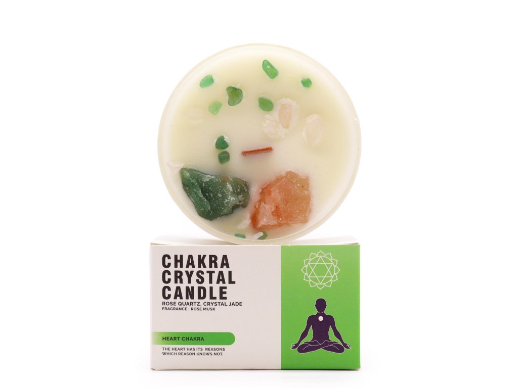 Zažijte sílu léčení s čakrovou křišťálovou svíčkou Heart Chakra od Ancient Wisdom, vytvořenou pro podporu otevřeného, soucitného a láskyplného srdce.