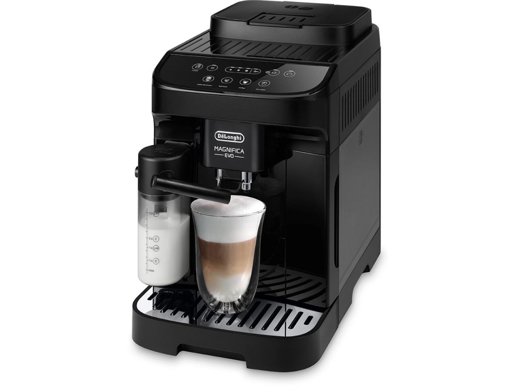 De’Longhi Magnifica Evo ECAM290.51.B – plnoautomatický kávovar s LatteCrema Hot systémem, dotykovým ovládáním, mlýnkem s 13 stupni a možností dvou káv najednou.
