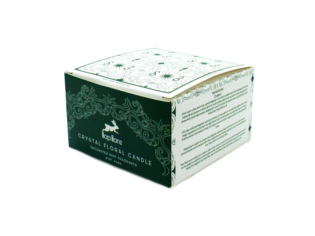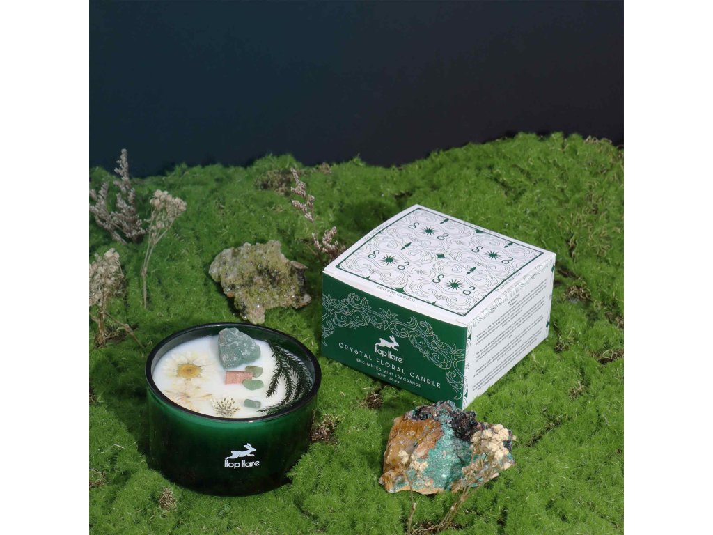 Hop Hare Magická Květinová Svíčka s Krystaly – Kouzelník, nefrit, 22 h
