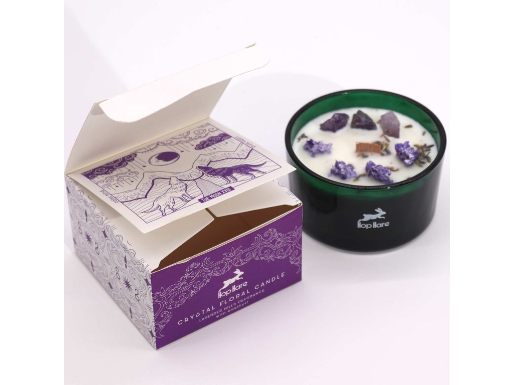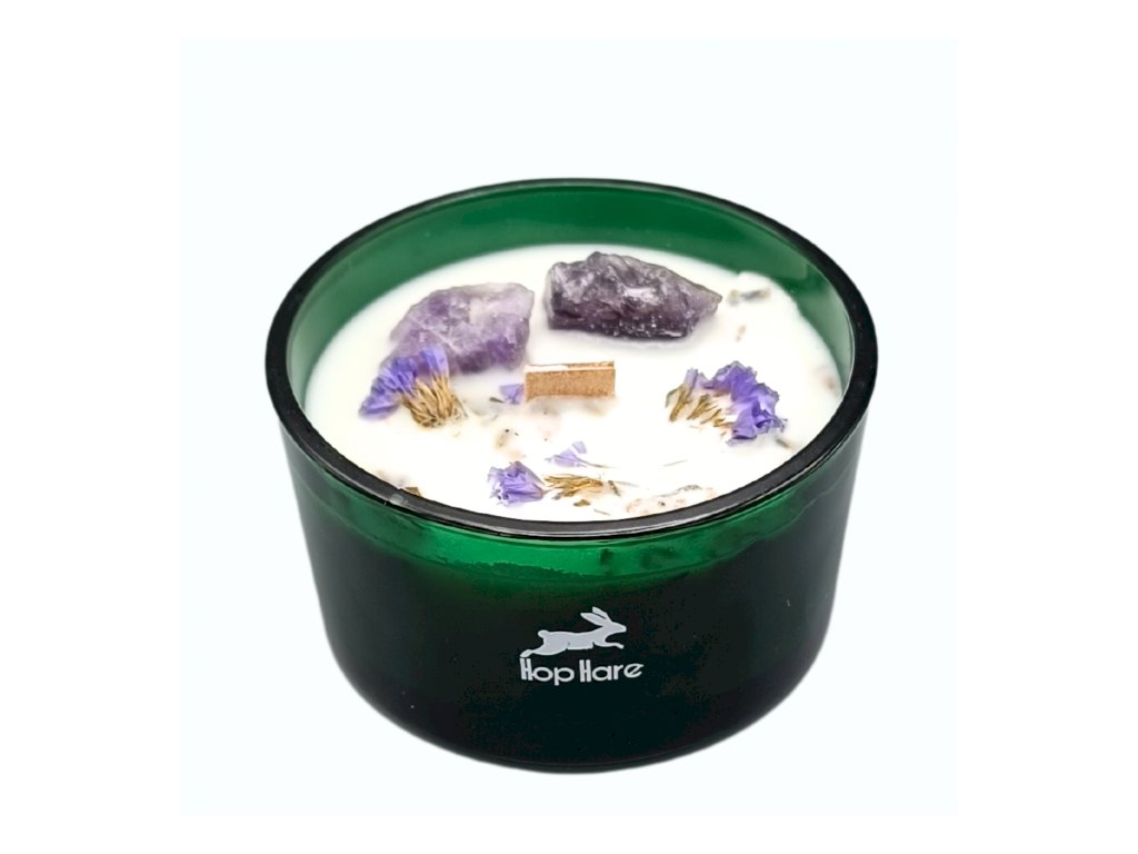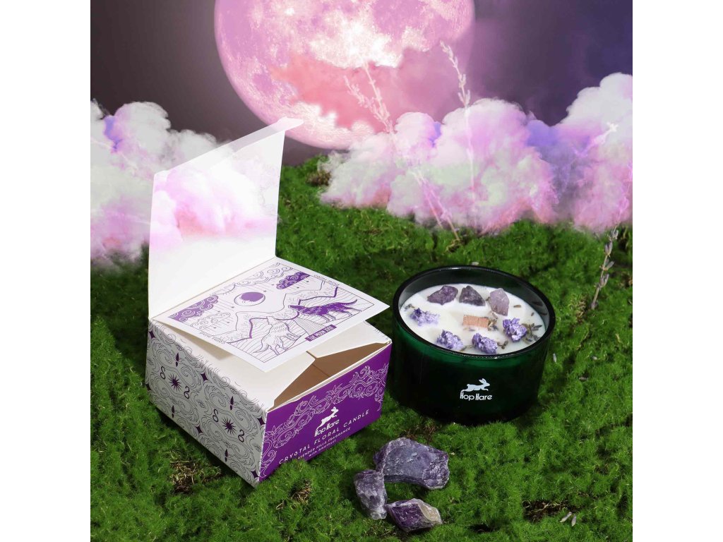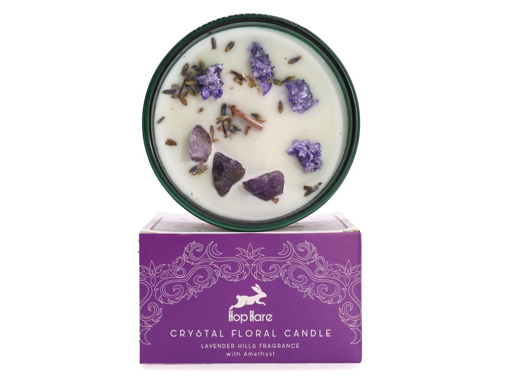 Hop Hare Magická Květinová Svíčka s Krystaly – Měsíc, ametyst, 22 h