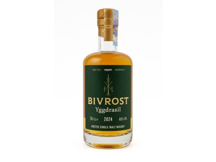 Bivrost Yggdrasil – limitovaná arktická single malt whisky inspirovaná severskou mytologií. Kouř, sherry, ořechy a mrazivá elegance. 46 % alkoholu.