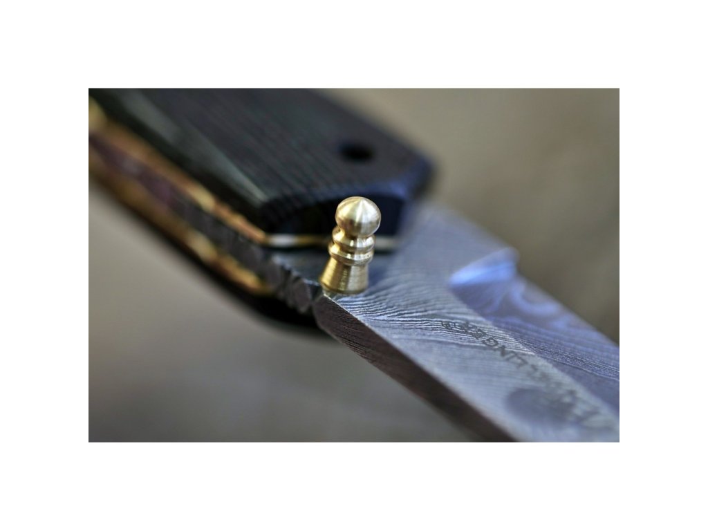 Čepel z vícevrstvé damaškové oceli nabízí unikátní kresbu, která nikdy nebude stejná. Díky tvrdosti přibližně 58–60 HRC si zachovává ostrost, ale zároveň pružnost, která je v terénu zásadní. Drop point profil je univerzální, ideální pro zpracování zvěře, práci se dřevem i běžné použití.