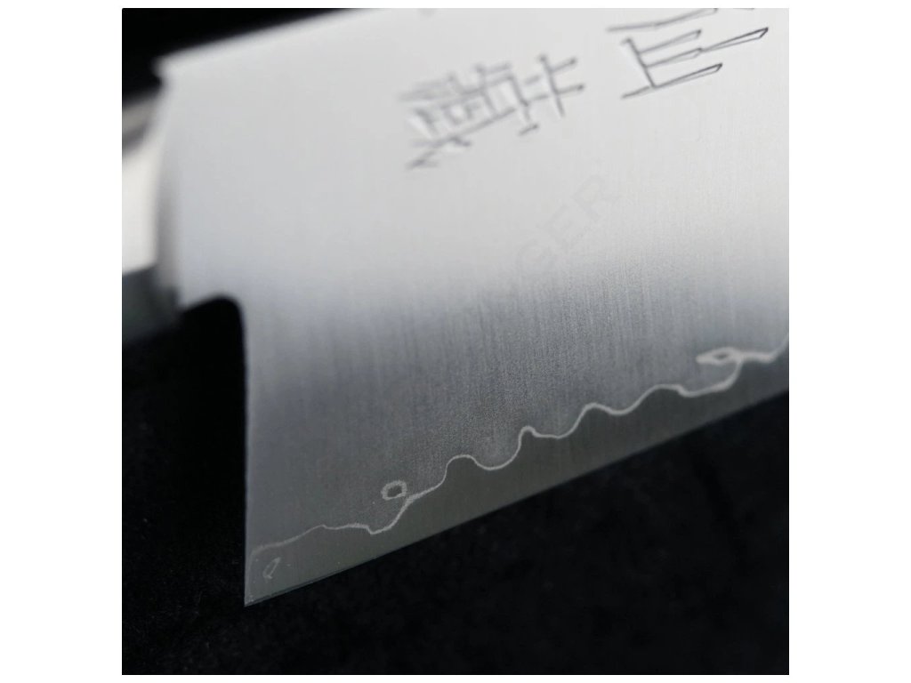 Čepel z 3plátové japonské oceli AUS-10 s tvrdostí cca 58 ±1 HRC poskytuje výbornou ostrost a dlouhou výdrž ostří. Díky minimálnímu poškození buněčné struktury surovin zůstávají vaše pokrmy šťavnatější, chutnější a plné vitamínů.