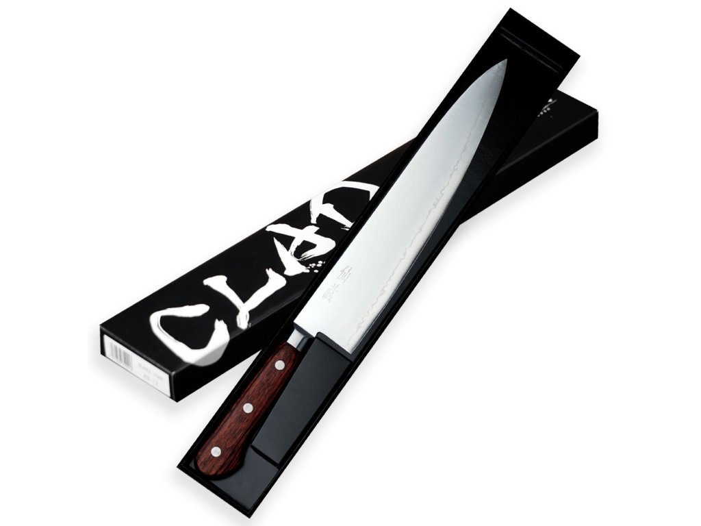 Japonský kuchyňský nůž Gyuto o délce 240 mm z kolekce SENZO CLAD je ideálním nástrojem pro všechny, kdo chtějí maximální preciznost při práci s většími surovinami.
