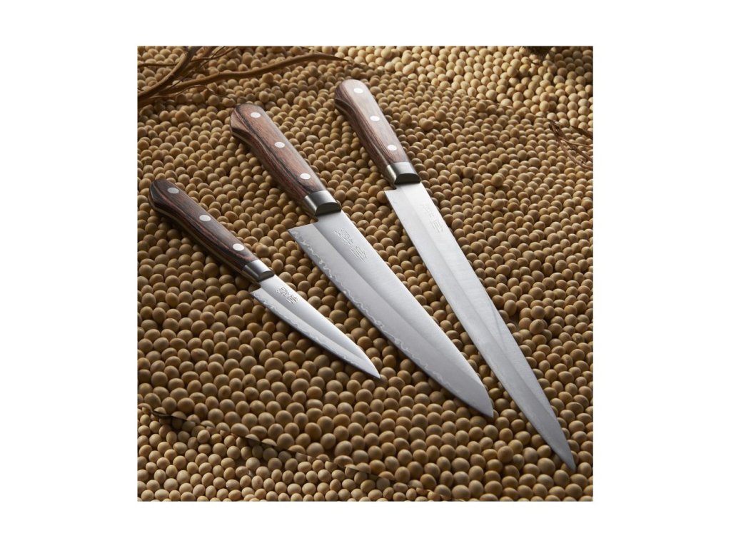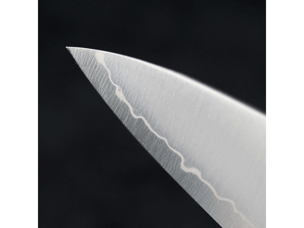 Gyuto je japonskou obdobou evropského šéfkuchařského nože, ale s tenčí čepelí a vyšší ostrostí – ideální pro dlouhé řezy, jemné krájení i technické tahy.