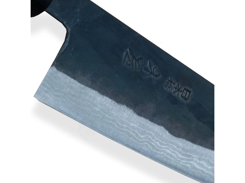 Čepel s 11 vrstvami damaškové oceli vzniká tradiční kovářskou technikou Echizen. Ohřev na dřevěném uhlí z borovice a následné kalení vdechnou oceli život – výsledkem je nádherný mramorový (Suminagashi) vzor a výjimečné řezné vlastnosti. Ostré jádro z japonské uhlíkové oceli Takefu V special grade řeže s minimálním odporem a maximální čistotou.