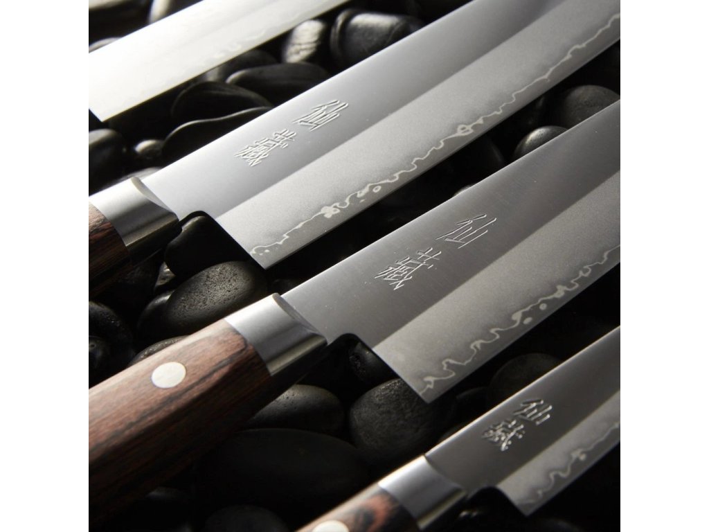 Čepel z 3plátové japonské oceli AUS-10 s tvrdostí cca 58 ±1 HRC nabízí skvělou rovnováhu mezi ostrostí, houževnatostí a výdrží ostří. Vysoká ostrost minimalizuje poškození buněčné struktury surovin – výsledkem jsou šťavnatější pokrmy plné chuti a vitamínů.