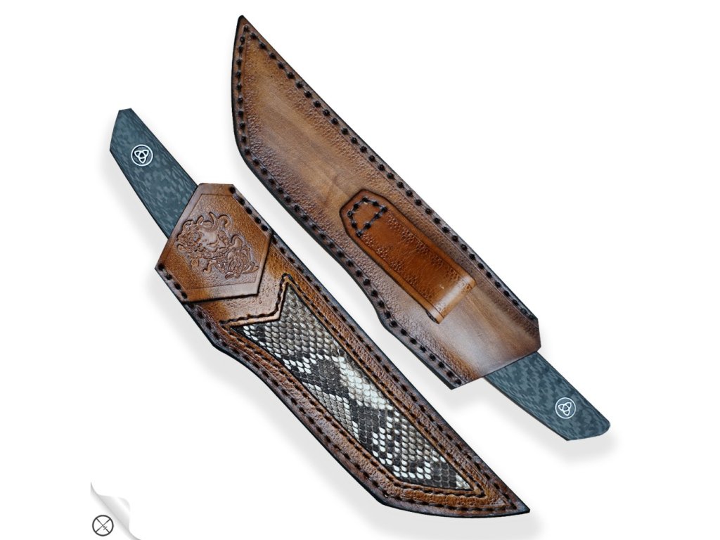 Scandinoff Nordic Protector 130 EDC je pevný nůž s čepelí z nerezové oceli Sandvik 14C28N, rukojetí z modré kadeřavé břízy a koženým pouzdrem – ideální pro každodenní nošení i...