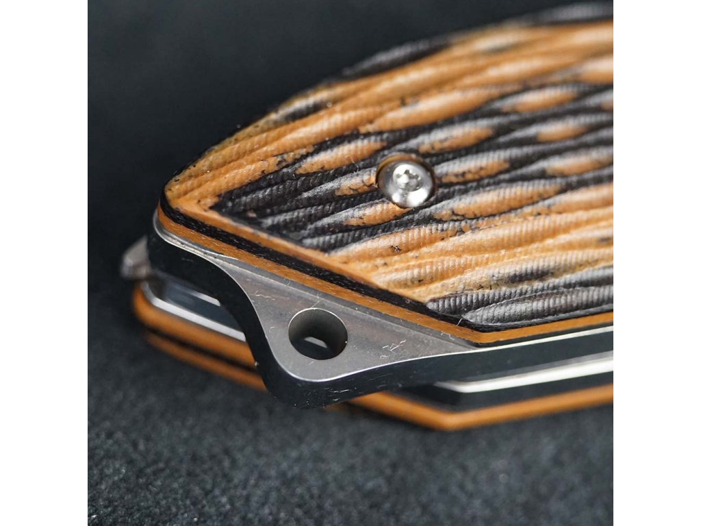 Rukojeť z G10 v kontrastním žlutém a černém provedení vypadá skvěle, ale především nezapadne v přírodě – ať už v trávě, na pařezu nebo v listí. G10 je extrémně odolný materiál – odolá vodě, potu i tvrdším nárazům. Texturovaný povrch zajistí jistý úchop i v rukavicích nebo za deště.