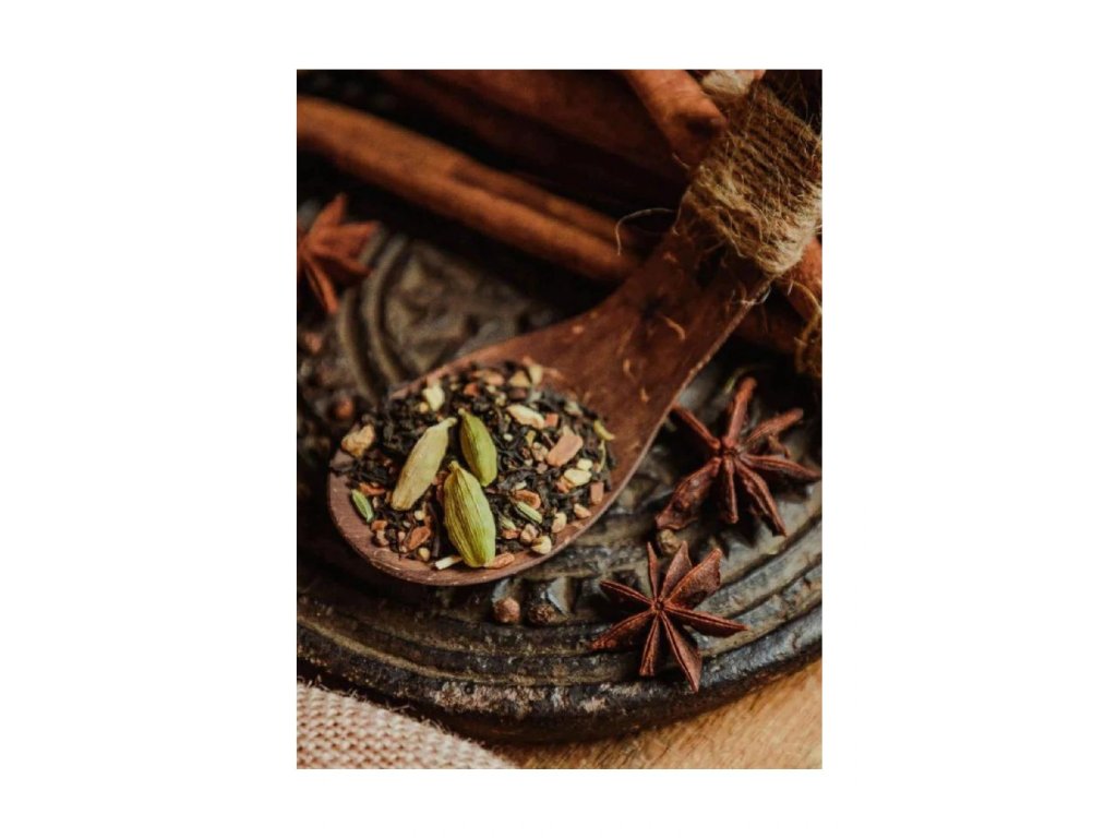 - Autentická směs – ručně míchaná kombinace čaje Assam a tradičního chai koření.