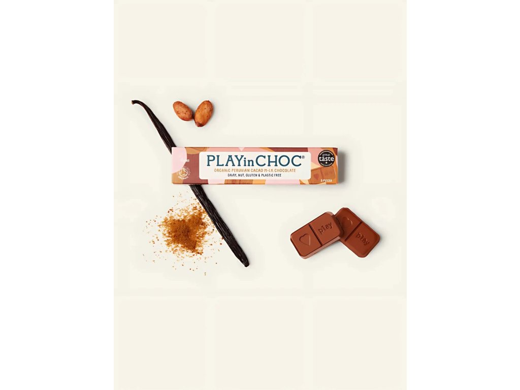 PLAYin CHOC je britská značka, která spojuje lásku k čokoládě, přírodě a hravosti. Všechny jejich produkty jsou organické, vegan, bez alergenů a plastů. Čokolády se vyrábějí s respektem k přírodě i lidem – z eticky získaného kakaa a ingrediencí v bio kvalitě.