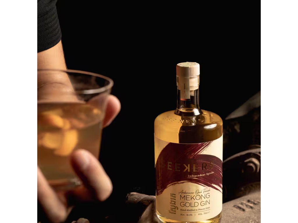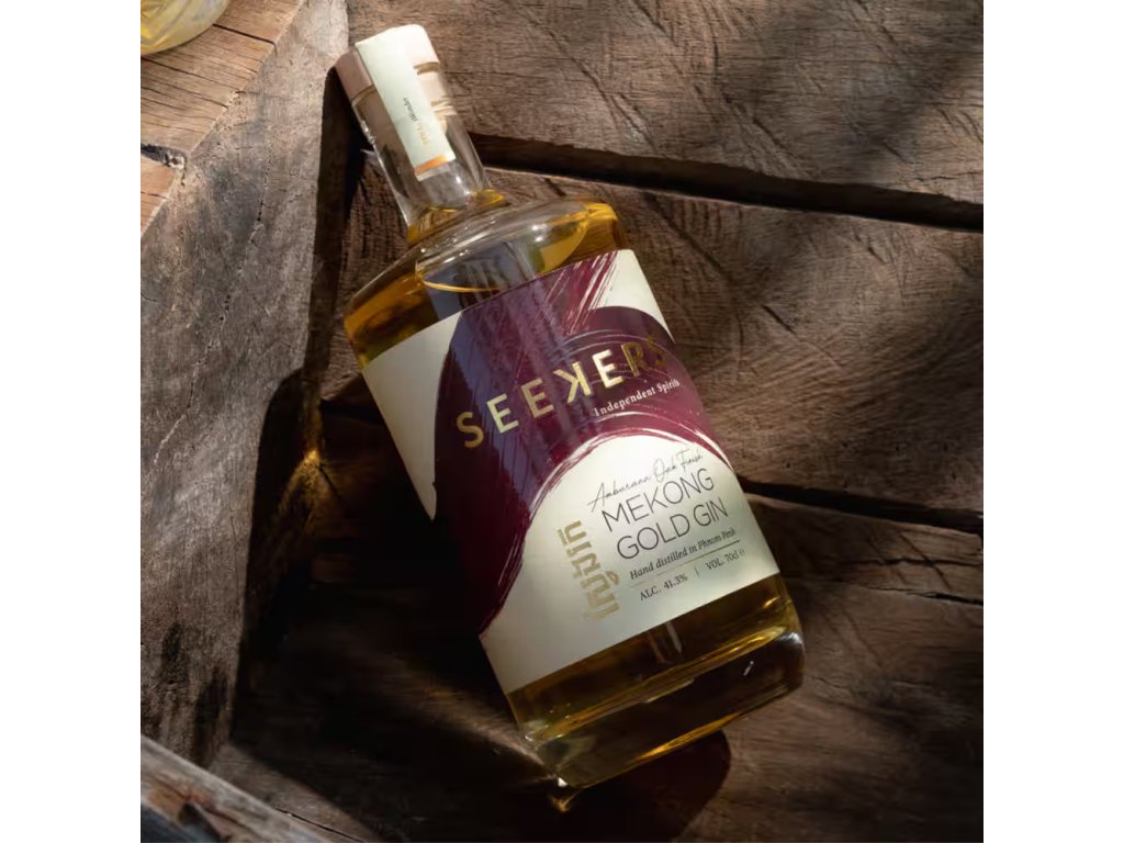 Seekers Mekong Zlato Gin je inspirován tradičními asijskými metodami zrání a parfémování. Dřevitý profil byl dosažen bez sudového zrání – pomocí precizní povrchové úpravy, která dodává aroma, aniž by ovlivnila čistotu základního destilátu.