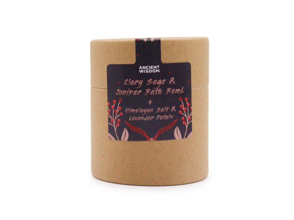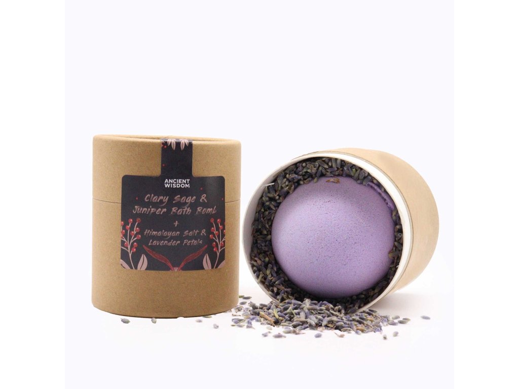 Clary Sage & Juniper Bath Bomb: koupelová bomba s himálajskou solí, levandulí a esenciálními oleji pro hlubokou relaxaci a regeneraci těla i duše.