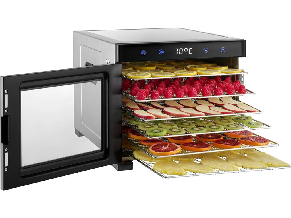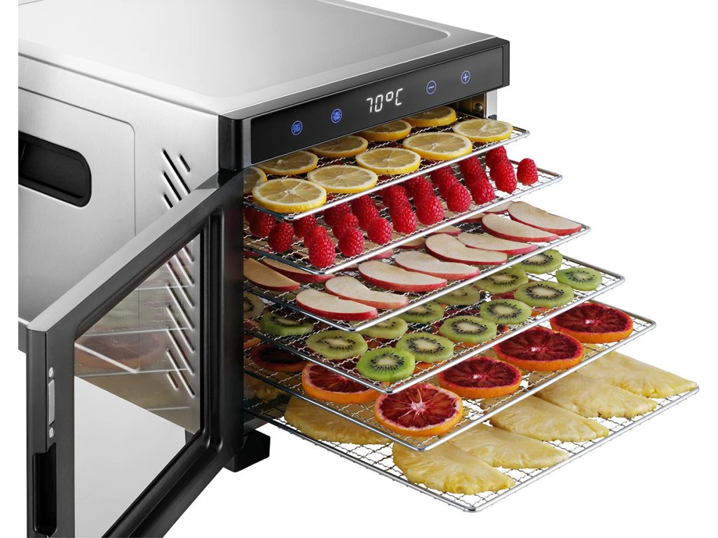 Sušička ovoce Concept SO2000 je výkonný pomocník pro celoroční zpracování úrody i přípravu zdravých snacků. S výkonem 650 W a horizontálním prouděním vzduchu usuší rovnoměrně ovoce, zeleninu, houby, bylinky, květiny, těstoviny i maso – a to bez nutnosti prohazování plat. 6 nerezových plat urychluje proces díky lepšímu vedení tepla a 6 plat na bylinky je ideální pro drobné suroviny.