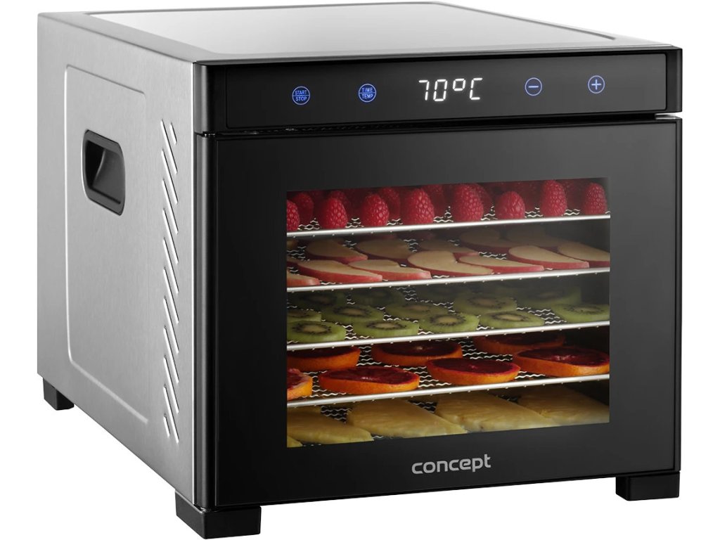 Sušička ovoce Concept SO2000 – 6 nerezových plat, 6 plat na bylinky, 2 RAW tácky, 35–70 °C, 650 W
