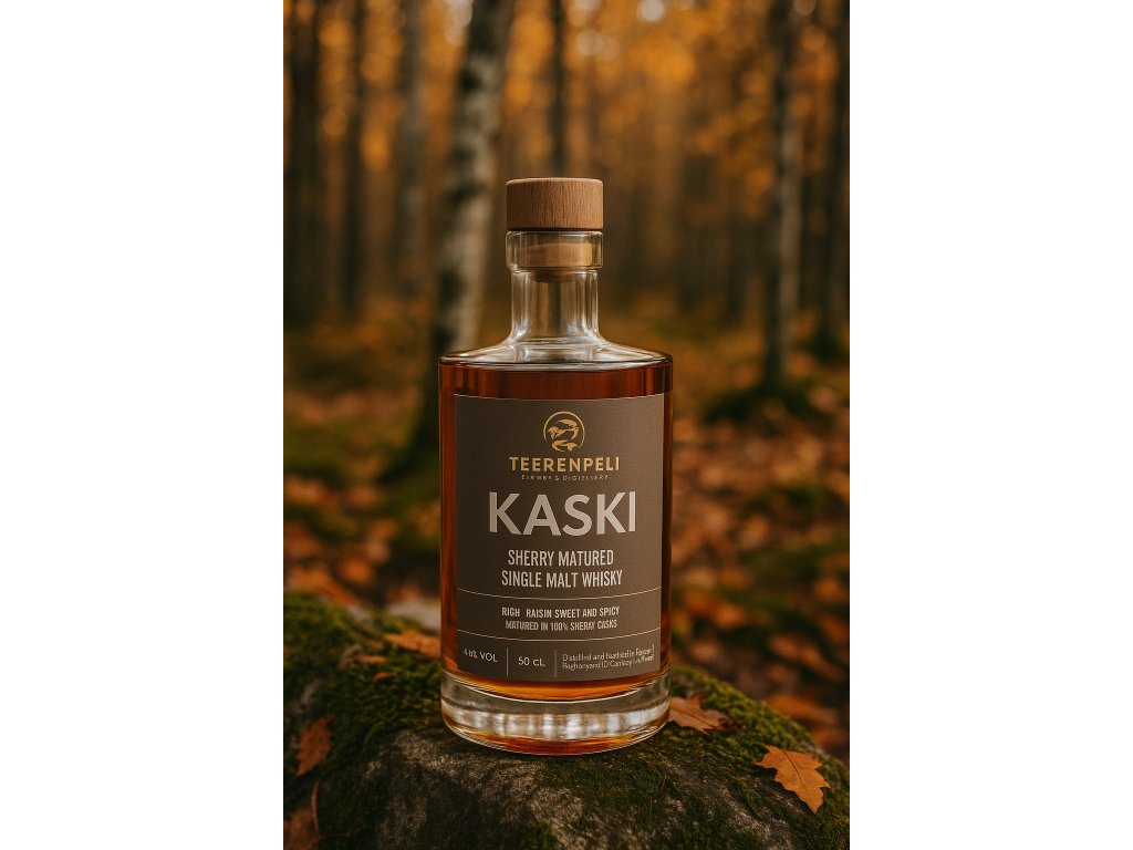 Teerenpeli Kaski – oceněná finská single malt whisky zrající výhradně v sudech po sherry. Hladká, ovocná, s tóny rozinek a pikantní dochutí. Skvost z palírny Teerenpeli.
