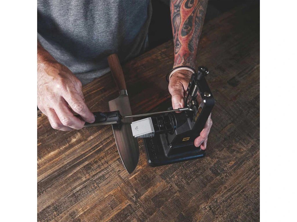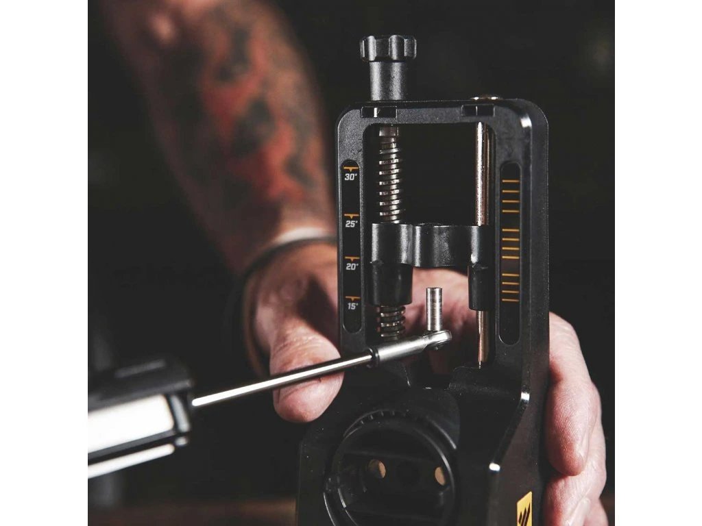 Pomocí šroubu lze plynule nastavit úhel broušení od 15° do 30°. Díky tomu snadno nabrousíte všechny běžné typy kuchyňských, outdoorových i EDC nožů.