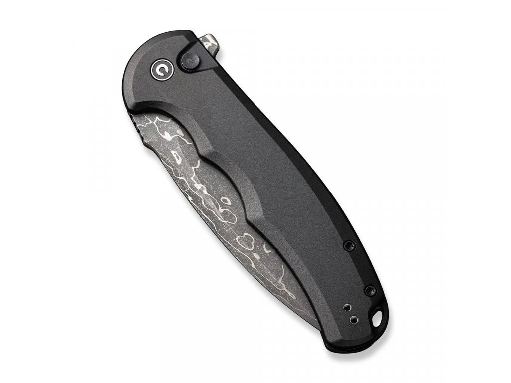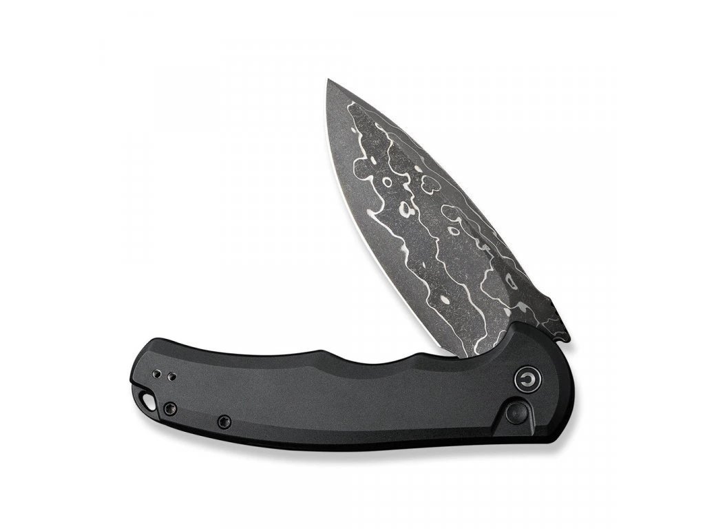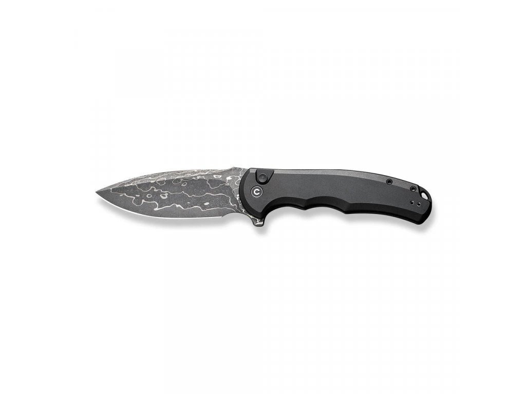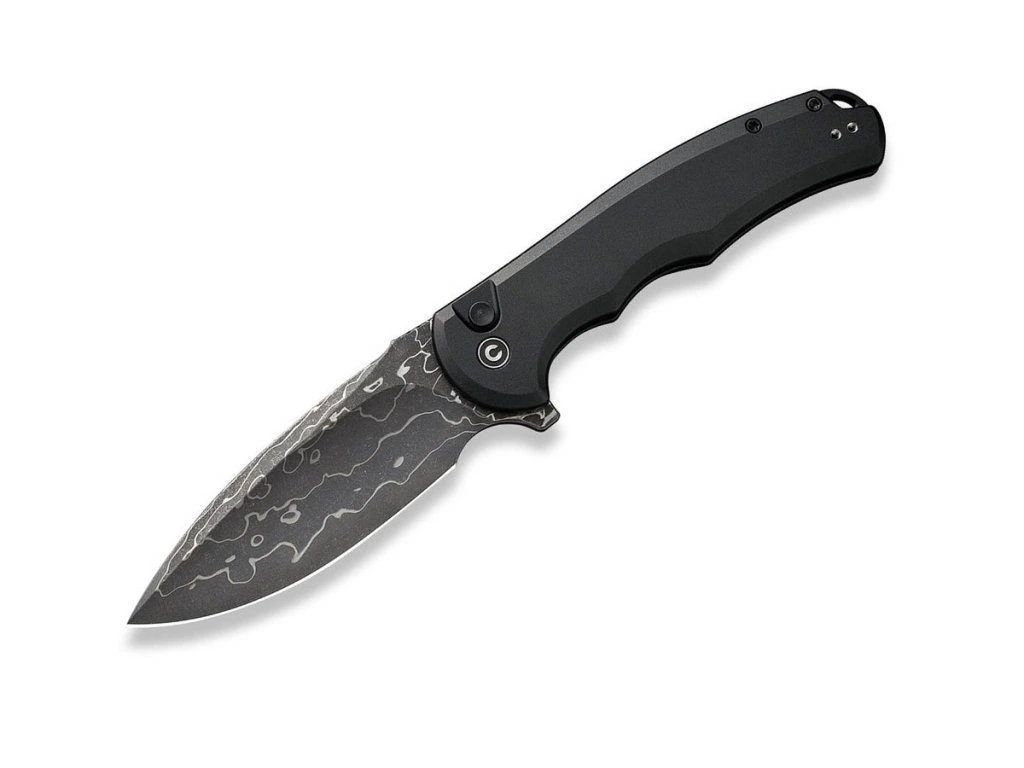 Zavírací nůž Civivi Button Lock Praxis – damašková ocel, černý hliník, 21,8 cm