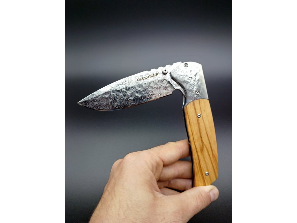 Zavírací nůž Dellinger Nomad Olive VG-10 – damašková čepel, olivové dřevo